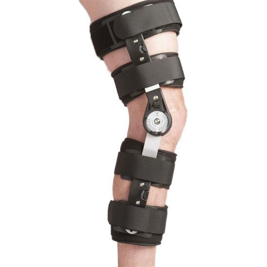A knee Range of Motion (ROM) brace featuring extendible arms. Suitable for knee injuries (ACL, Meniscus, knee trauma ect)